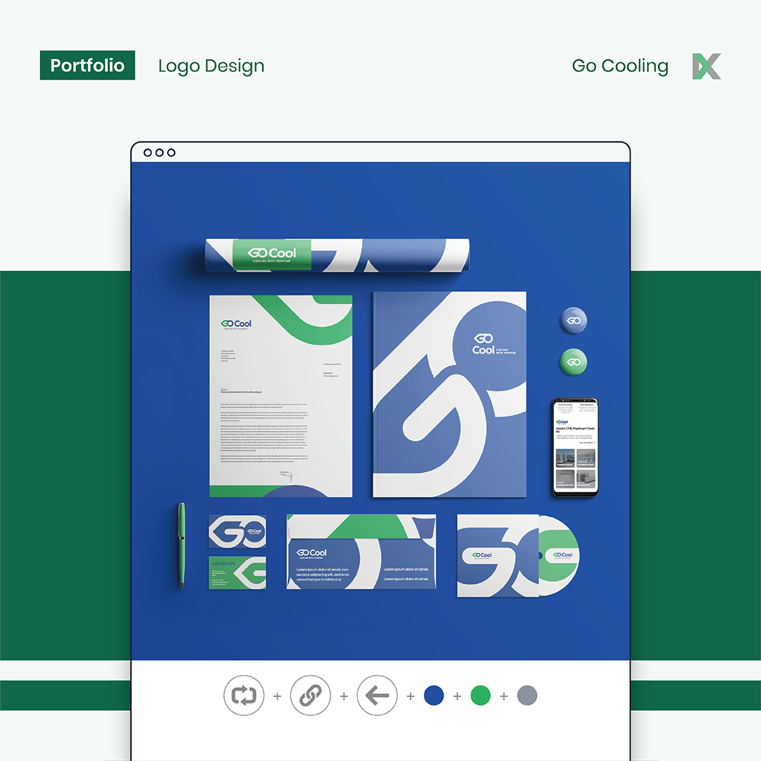 GO Cooling logo merges the G–O loop to show connection and progress, with the arrow in the G emphasising forward movement and energy-efficient guidance.