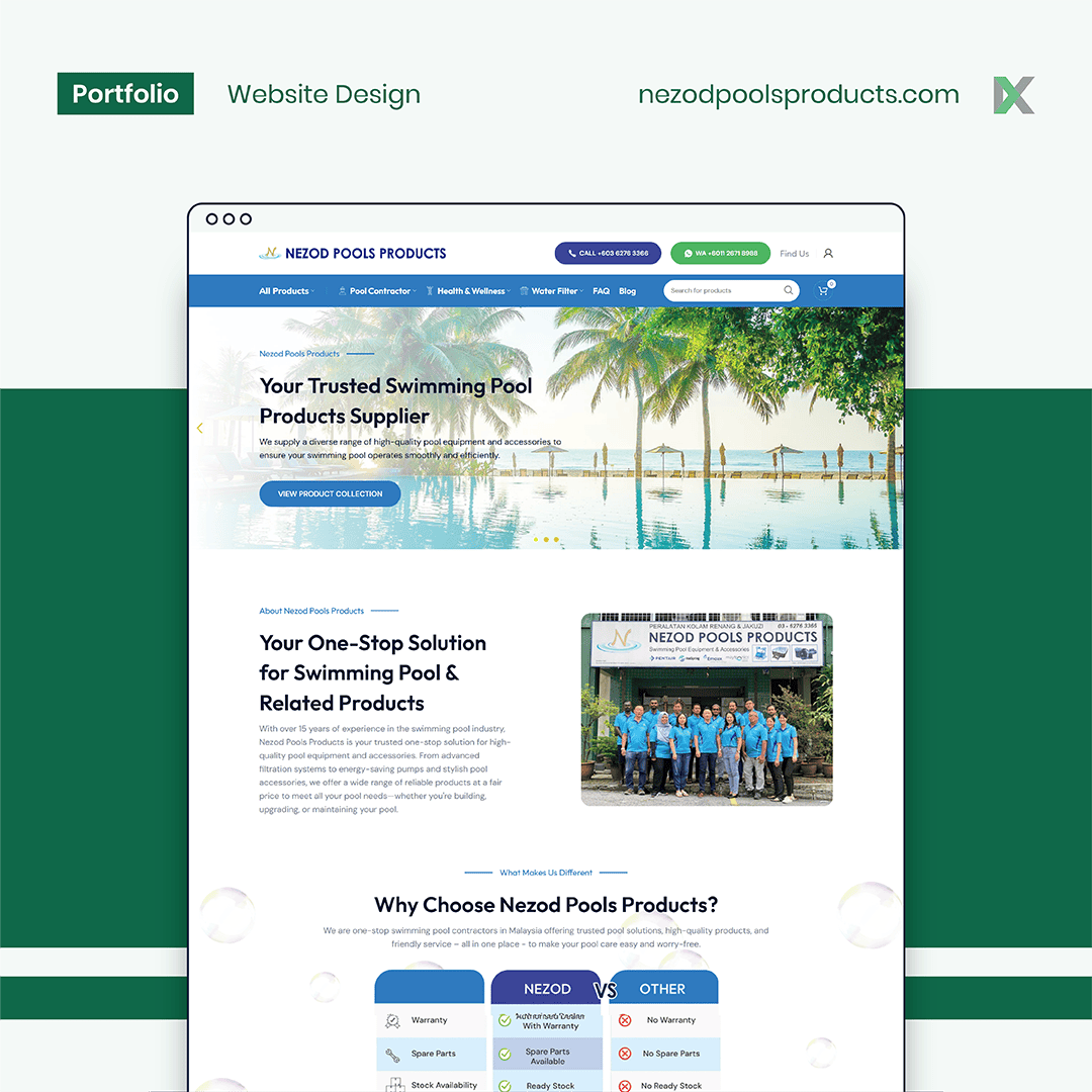 With over 15 years of experience as Malaysia’s leading certified swimming pool contractors, Nezod provides trusted swimming pool products and solutions to help you maintain a clean, safe, and enjoyable pool—every day.
